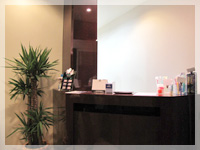 当院のスタッフが笑顔でお出迎えします。ご予約などもこちらの受付で承ります。